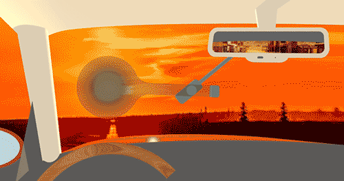 Sunlight can be blinding when driving early or late in the day. When the sun enters the driver’s field of view, the elbow-arm visor goes to work to block the sun, using a dashboard camera like an optical joystick. The visor does not appear to be a black spot in the scene, but rather the absence of blinding sun, to make the scene look more uniform.