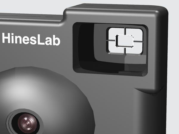 “The reflective perimeter of the new viewfinder focuses the frame line; the scene, undiminished in size or quality, is viewed through an open hole” in the article “Skip the Lens”, in SPIE Magazine, May 2005.