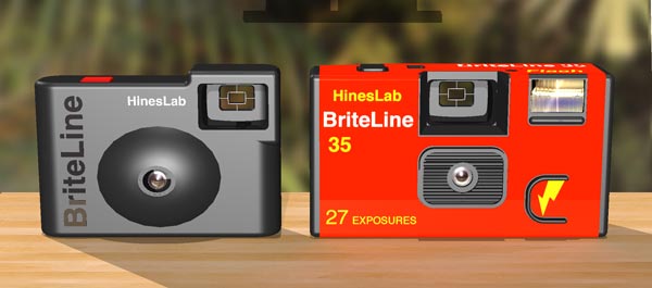 Alignment of the optical elements is automatic when the camera body is assembled. A projected frame line has been available in only expensive consumer cameras, while unheard of in single-use cameras