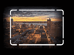 Lensless-VF-80_frame-thru-VF_250w The view through the viewfinder as the photographer approaches. The photographer sees the scene directly through the open holes. The projected bright frame appears at the distance of the scene. |