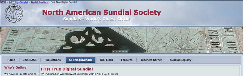 - North American Sundial Society (NASS) declares it “The First True Digital Sundial“, October 2, 2014